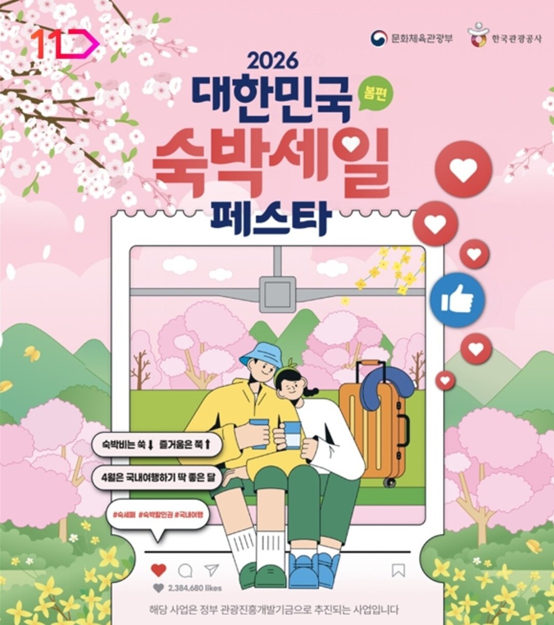 커머스 플랫폼 11번가가 문화체육관광부와 한국관광공사가 주관하는 '2026 대한민국 숙박세일 페스타'에 참여한다.